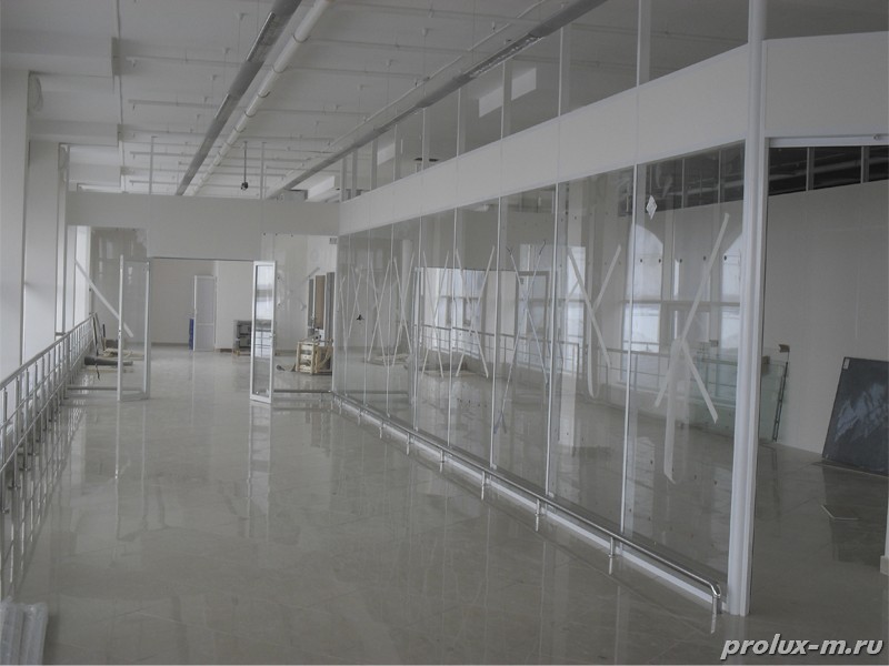 Немаловажное качество перегородок от компании «ПРОЛЮКС-М» - отличная звукоизоляция, что является весьма весомым при оборудовании современных офисных помещений, где всегда царит атмосфера легкой взбудораженности и разговоры часто ведутся на повышенных тонах. А небольшие раздвижные перегородки, сделанные как прозрачными так и глухими, позволят удобно поделить внутреннее пространство небольших комнат.